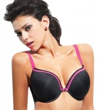 Underwire T-shirt bra. Seamless, stretch microfiber. Demi cups provide moderate coverage. Foam lining prevents show-through. Virtually disappears under thin fabrics. Contrasting lace trim along bustline and straps. Designed to fit and flatter fuller figures. Back adjustable, close-set, stretch straps. 3 column, 2 row hook and eye back closure. Columns and rows increase with size. U.K. cup sizes. See size chart for U.S. conversion.. Panache Style 5846